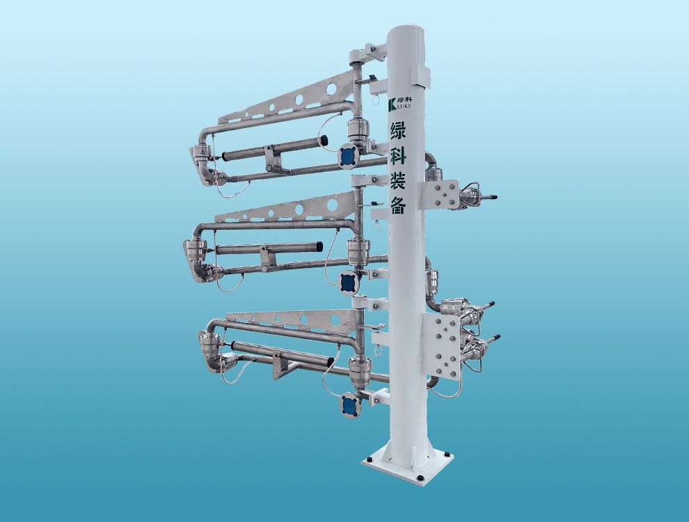 無氮氣保護(hù)裝置裝卸車臂:裝卸車臂由液相臂、氣相臂、增壓臂組成。卸車臂的轉(zhuǎn)向閥采用特殊密封,保證空氣不會進(jìn)入轉(zhuǎn)向閥的內(nèi)部,避免了出現(xiàn)轉(zhuǎn)向閥結(jié)冰無法轉(zhuǎn)動的現(xiàn)象。該裝卸車臂不用氮氣保護(hù)系統(tǒng),減少了設(shè)備投資和后期運行過程中購買氮氣消耗的費用。