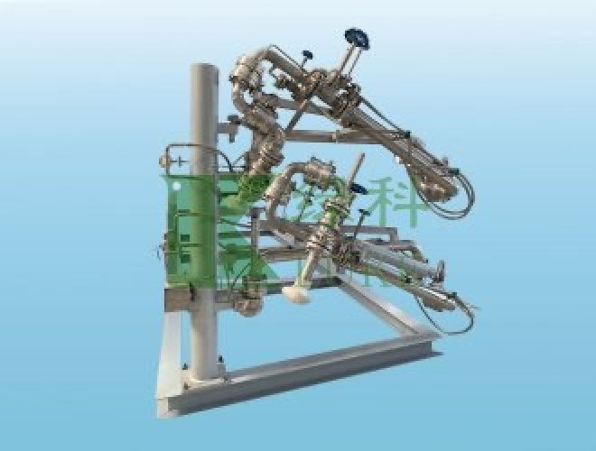 帶氮?dú)獗Wo(hù)裝置裝卸車(chē)臂:裝卸車(chē)臂由液相臂、氣相臂、增壓臂和氮?dú)獗Wo(hù)吹掃系統(tǒng)組成。利用干燥的高壓氮?dú)獗Wo(hù)閥門(mén)不與空氣接觸,避免出現(xiàn)轉(zhuǎn)向閥結(jié)冰無(wú)法轉(zhuǎn)動(dòng)的現(xiàn)象發(fā)生。氮?dú)獯祾呦到y(tǒng)可保證管路中不會(huì)混入空氣。